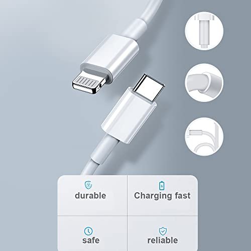 【Extra longue et haute vitesse】La longueur de 6,6 pieds facilite la charge de n’importe où dans la pièce. 2pack est pratique pour la maison et le bureau. Nos câbles USB prennent en charge la charge rapide lorsqu’ils sont associés à un chargeur USB-C. Chargez l’iPhone 13/12 de 0% à 58% en seulement 30 minutes.