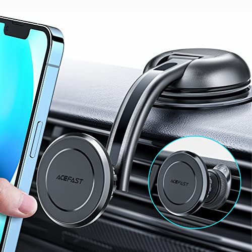 ACEFAST Support Téléphone Voiture Magnétique Porte [8 Aimants Super Puissants] Porte Ventouse Aimanté, Tableau de Bord ou Grille d’aération, 3 Fixé, 360°Rotation, Compatible avec Tous Les Smartphones