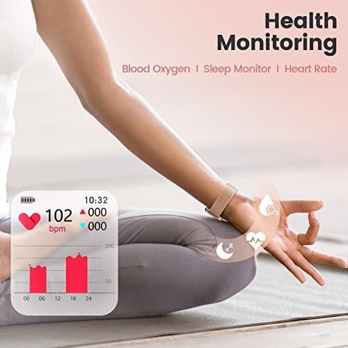 AooDen Montre Connectée Femme, 1,69 » Smartwatch Étanche IP68 avec Fréquence Cardiaque, Oxygène Sanguin, Sommeil, Montre Connectée Fitness 24 Modes Sportifs Tracker d’activité pour Android iOS Or