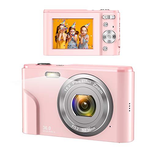Appareil Photo Numérique Compact 1080P Mini Video Camera 2,4 Pouces 36MP HD LCD Rechargeables Vlogging Appareil Photo avec 16X Digital Zoom, Cadeau pour Adolescents,Enfants,Débutants,Adultes(Rose)