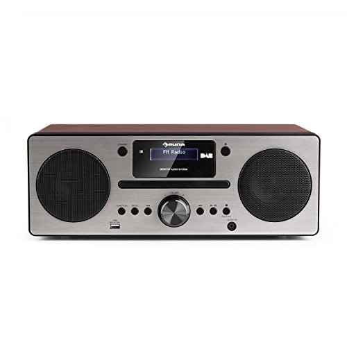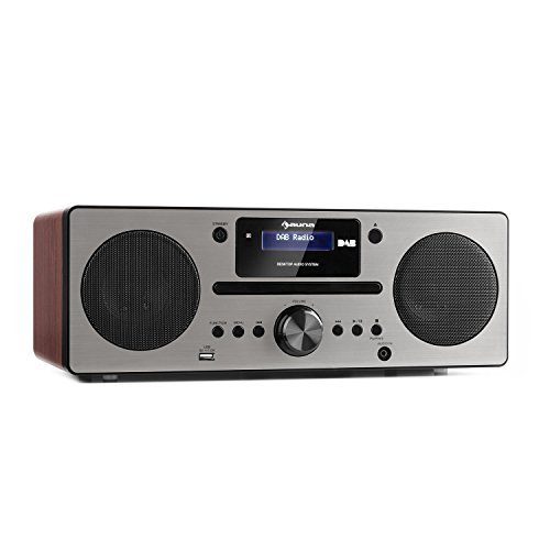 AUNA Harvard – système Micro, chaîne stéréo, Dab/Dab + et FM, 80 Stations programmables, RDS, Fonction réveil, Bluetooth 3.0, Lecteur CD, AUX, Port USB pour Recharge, télécomande, Noisette