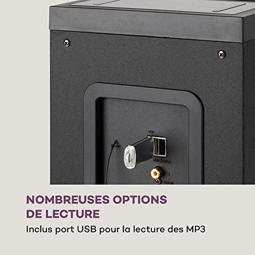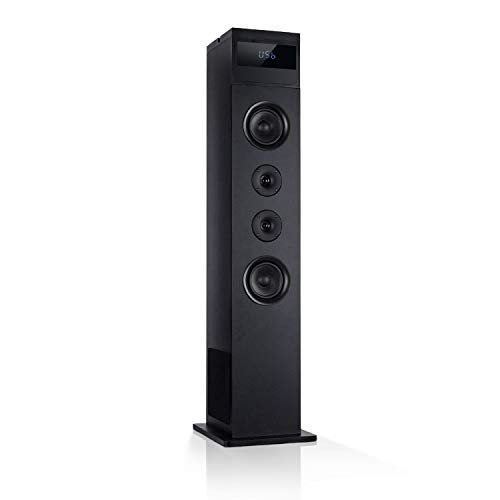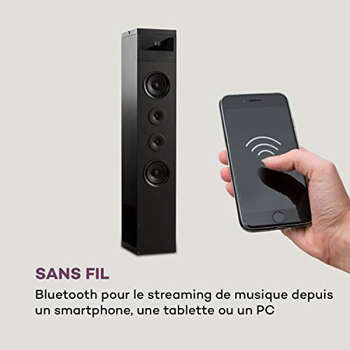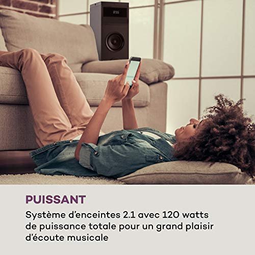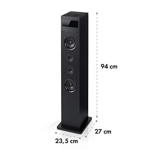 AUNA Karaboom 100 – système d’enceintes 2.1, Enceinte Tour, Enceinte 2.1, 120W Max, Bluetooth, Port USB 2 en 1, MP3, AUX-in, Support Tablette – Noir