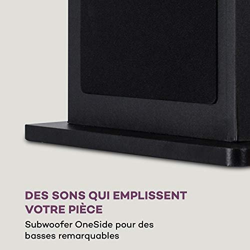 SON PUISSANT: Avec une puissance maximale de 120 watts, le contenu musical est reproduit avec un son puissant. Le caisson de basses OneSide offre des basses remarquablement pleines et des sons qui remplissent la pièce.