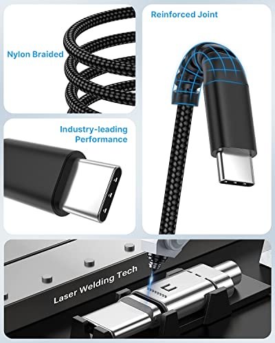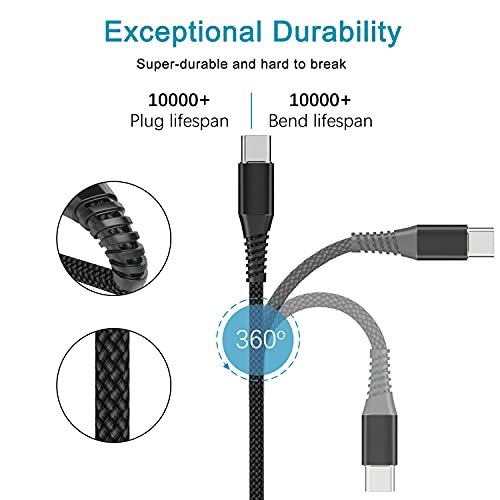[Câble USB de type C tressé en nylon] – Tressé en nylon, durabilité extrême,Avec une durée de vie testée de 10000+, ce câble de chargement USB C est beaucoup plus fiable que d’autres dans sa gamme de prix. Le câble de type C tressé en nylon de qualité supérieure ajoute une durabilité supplémentaire et des fonctions sans enchevêtrement