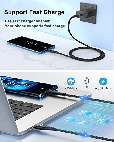 [Synchronisation et Charge Rapide] – 2 en 1 qui combine les fonctions de transmission de données et de charge d’alimentation. La vitesse de transmission du câble peut atteindre 480 Mbps et il prend en charge une charge rapide de 3A. Pour une charge rapide, nous vous recommandons de l’utiliser avec la fiche du chargeur d’origine.