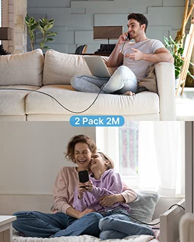 [Câble chargeur USB C parfait de 2m] – avec une longueur de 2M, vous pouvez vous allonger sur le canapé ou le canapé et utiliser vos appareils pendant que vous chargez en même temps. Et vous pouvez l’utiliser librement dans votre chambre, votre bureau et même à l’arrière de votre voiture.