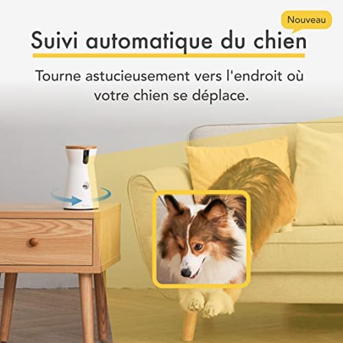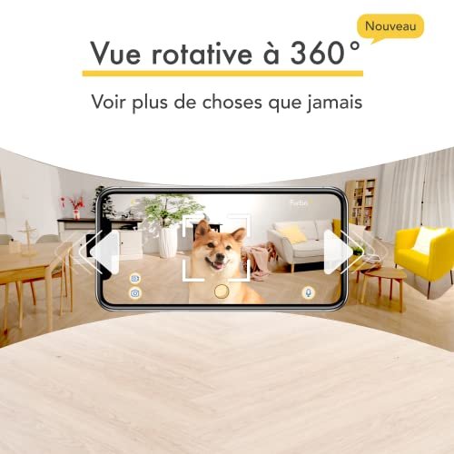 Caméra pour Chien Furbo 360°: Caméra avec Vue à 360°,Rotation, Lancer de friandises,Vision Nocturne en Couleur,panoramique HD 1080p,Audio bidirectionnel,alertes d’aboiement, conçue pour Les Chiens.