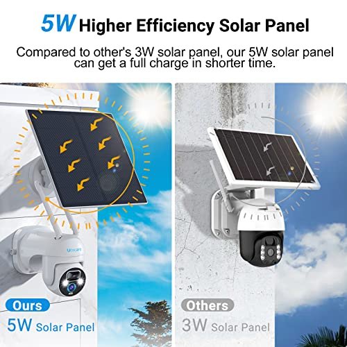 Camera Surveillance WiFi Exterieure sans Fil, UCOCARE Ultra HD 2K Caméras de Surveillance, Panneau Solaire 5W, Pan/Tilt/Zoom, Détection Humanoïde, Vision Nocturne Couleur, Audio Bidirectionnel, IP66