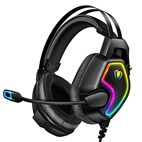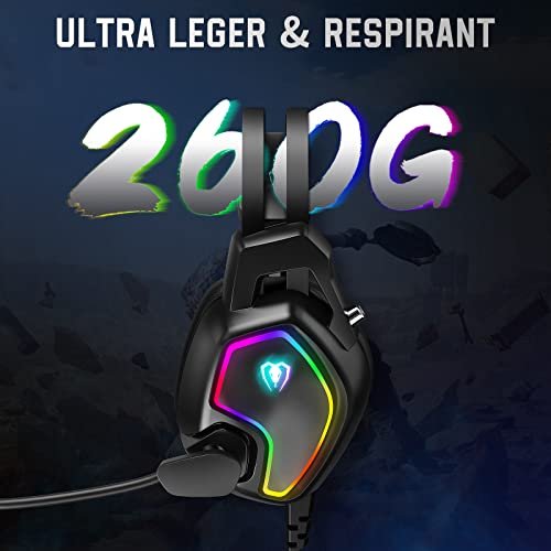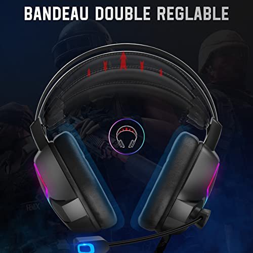 Casque Gaming pour PC PS4 PS5, Casque Gamer Pro Ultralight LIGHTSYNC RVB avec Bandeau Suspendu Antibruit Flexible Microphone Coupure du Micro