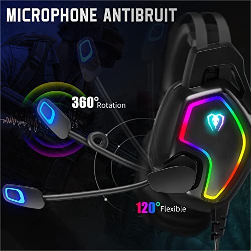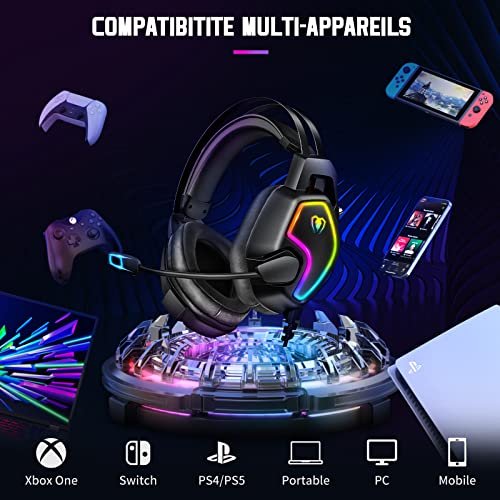 Compatibilité multiplateforme : Casque de jeu jack 3,5 mm, compatible avec pc, ps4/ps5, xbox one. Le câble USB est utilisé pour alimenter les lumières RVB.