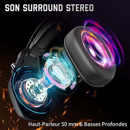 Stéréo de haute qualité: Le casque gaming combiné à une technologie audio avancée pour fournir un son surround analogique multichage de haute qualité qui vous permet d’entendre clairement les positions de tir à proximité.