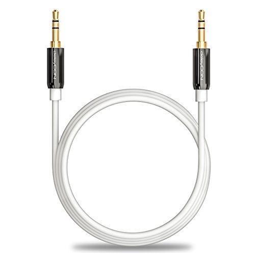 deleyCON 1m Jack Cable 3,5mm AUX Cable Stéréo Cable Audio Jack Plug Droit pour PC Téléphone Mobile Smartphone Tablette Voiture Récepteur HiFi – Blanc