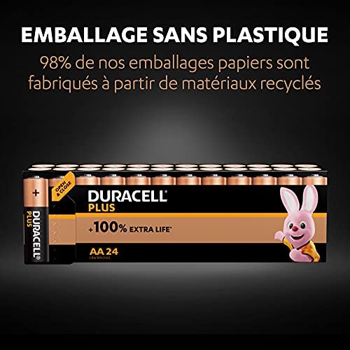 Duracell – Piles alcalines AA Plus, 1.5 V LR6 MN1500, paquet de 24