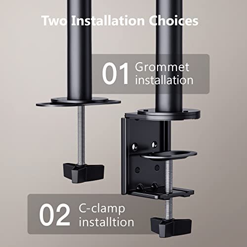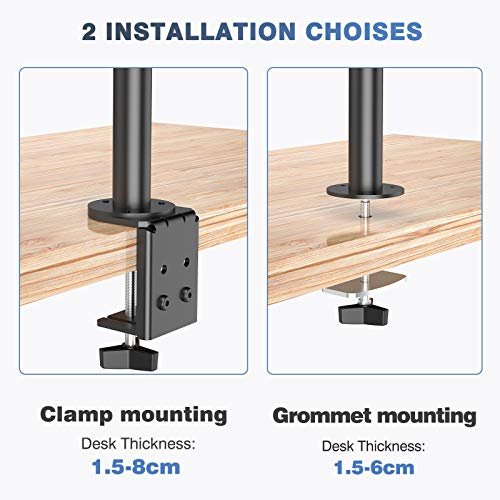 【 Installation Facile 】 Le support support ecran pc avec tous les outils nécessaires à l’installation est inclus, sans achat supplémentaire. Avec 2 choix de montage séparés, l’un avec une pince « C » (convient à l’épaisseur du bureau de 8cm maximum) offre une stabilité suprême, en maintenant votre écran fermement et en toute sécurité en place ; et l’autre à monter en utilisant le trou du bureau, l’épaisseur du bureau de 5,4cm maximum, suivez le guide c’est un jeu d’enfant.