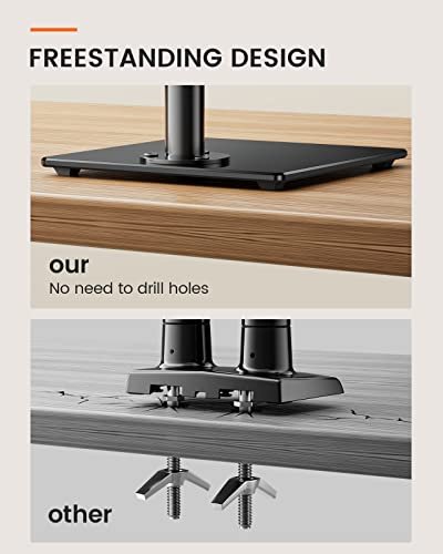 CONCEPTION AUTOPORTANT : Comparé aux supports de moniteurs fixes, ce support de moniteur autoportant ne se limite pas à l’épaisseur et au matériau de votre bureau. Ce support pour écran unique peut être placé partout où vous aménagez votre espace de travail et déplacé si nécessaire.