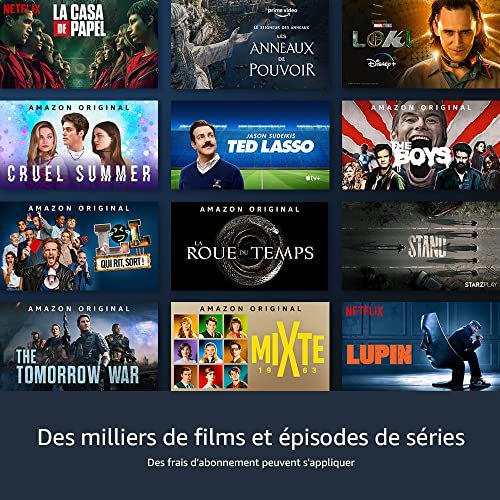 Des milliers d’applications, de Skills Alexa et de chaînes, dont Prime Video, Netflix, YouTube, Disney+, Molotov, ARTE, France 24, etc. Des frais d’abonnement peuvent s’appliquer.