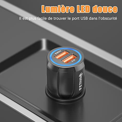 Hoppac Chargeur de Voiture USB, 2 Ports Chargeur de Voiture, Quick Charge 3.0 Chargeur Allume-Cigare USB Compatible avec iPhone, iPad Samsung Galaxy S10/S9/S8, Huawei, Xiaomi Noir
