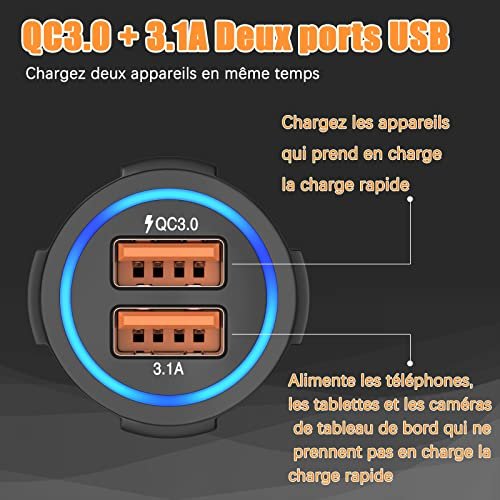 Large compatibilité : convient pour caravane, voiture, SUV, camionnette, camion, bateaux, motoneige, etc. Peut charger presque tous les appareils, tels que smartphones, tablettes, appareils photo de sport, lecteurs MP3, alimentation mobile, électronique, etc.