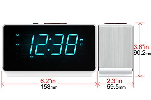 Ce radio-réveil numérique combine 6 fonctions : format 12/24 heures pour l’heure du test ; Double alarme avec commande de réveil séparée; radio FM pour écouter les actualités ; commande de gradation automatique et manuelle pour les soins oculaires; SNOOZE et port de chargement USB pour appareils mobiles et chargement facile de votre téléphone près du lit.