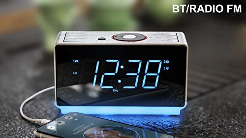 iTOMA Radio-réveil avec Bluetooth sans Fil, Radio FM numérique, Double Alarme avec Fonction de répétition,Contrôle du Gradateur, Fonction de Chargement USB pour téléphone Portable (CKS708BT)