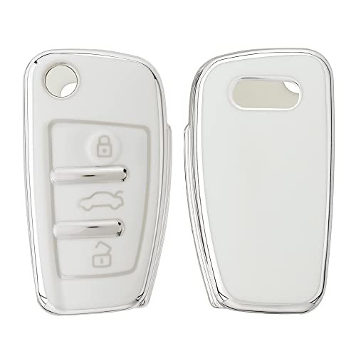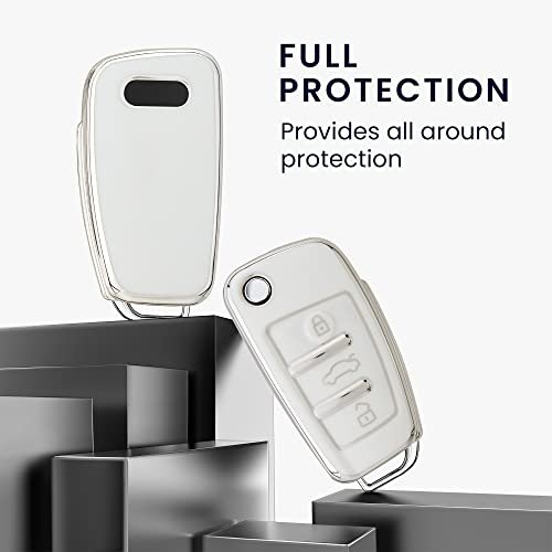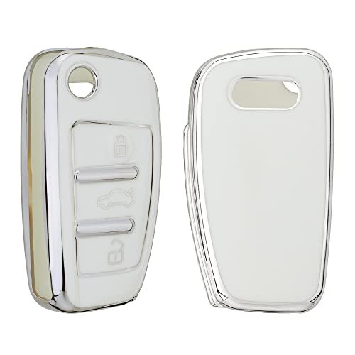 kwmobile Boitier Clef Voiture Compatible avec Audi Clé 3-Touches – Coque en Silicone de Clef de Voiture – Étui de Protection Blanc-argenté