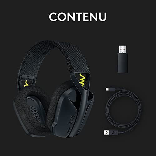 Logitech G435 LIGHTSPEED & Bluetooth sans Fil Casque Gaming, Casque léger circum-auriculaire, Micro intégré, Batterie de 18h, Compatible avec Dolby Atmos, PC, PS4, PS5, Mobile, Nintendo Switch – Noir