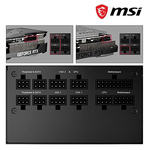 SUPPORT GPU SUPPLÉMENTAIRE – L’alimentation MPG A650GF comprend un support de connecteur d’alimentation 3 x 6+2 pin pour les dernières cartes graphiques NVIDIA GeForce RTX 20/30 & AMD aux exigences d’alimentation plus élevées