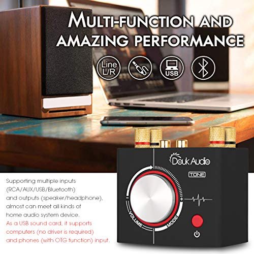 Prenant en charge plusieurs entrées (RCA / AUX / USB / Bluetooth) et sorties (haut-parleur / casque), peut tout comme une carte son USB prenant en charge les ordinateurs (aucun pilote requis) et les téléphones (avec fonction OTG), peut presque satisfaire tous les types d’audio domestique dispositif système.