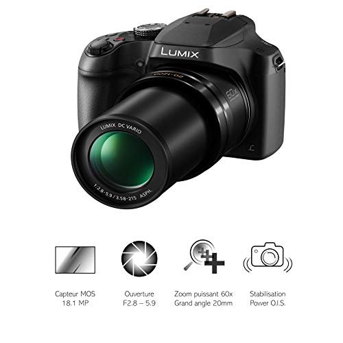 Panasonic Lumix FZ82 | Appareil Photo Bridge Zoom Puissant (Capteur 18MP, Zoom Lumix 60x F2.8-5.9, Grand angle 20mm, Viseur, Ecran tactile, Vidéo 4K, Stabilisation) Noir – Version Française