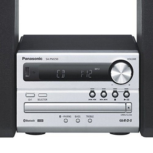 Panasonic SC-PM250EC-S Micro-chaîne (Hi-FI, Bluetooth, équipement Audio pour Votre Maison, CD, Bluetooth, USB, MP3, Radio FM, 20 W (RMS), Design Compact, égaliseur) Argenté