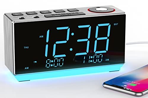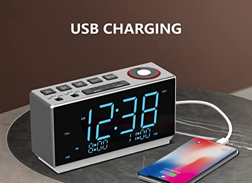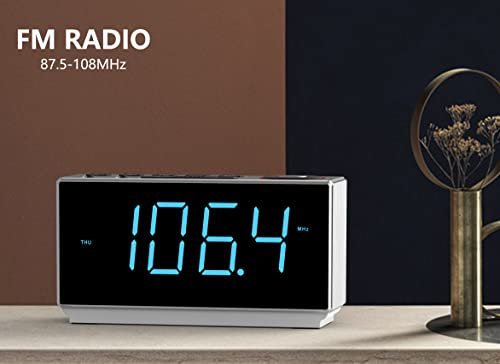 Radio-réveil de Chevet numérique iTOMA FM avec Horloge veilleuse, Commande de variateur de luminosité de Voiture, Double écran à LED Blanche de 1,8 Pouce, Entrée auxiliaire de Chargement USB