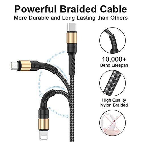 【Superbe Durabilité】Le connecteur de cable multi usb 3 en 1 en matériau stable en alliage de zinc, anti-oxydation, anti-rouille. câble composé par nylon tressé ont une excellente propriété anti-torsion et anti-abrasion, après 10000+ fois flexion testé performances constantes et bien travailler.