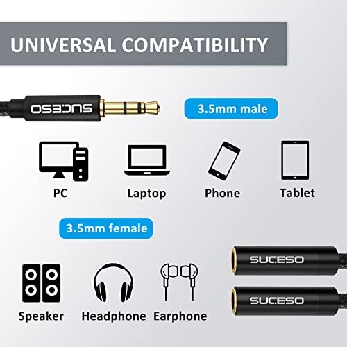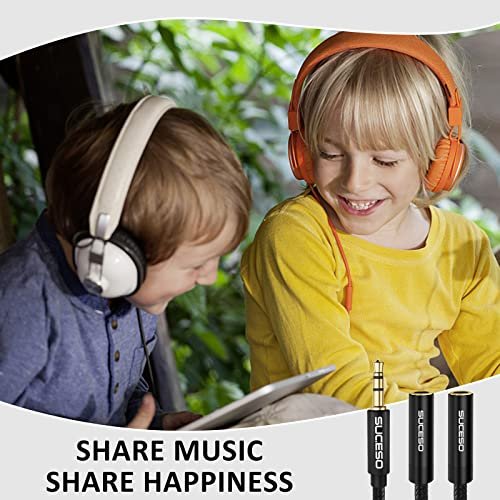 PLAISIR PARTAGÉ : SUCESO splitter audio permet de raccorder deux casques à une même sortie audio 3,5 mm, partagez la musique et les films avec vos amis et votre famille partout. NOTE: INCOMPATIBLE avec microphone.