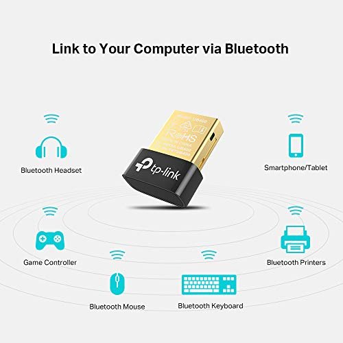 【Reliez votre PC au bluetooth】Clé Bluetooth UB400 TP-Link ajoute la fonctionnalité Bluetooth à un ordinateur qui en est dépourvu, et permet à cet ordinateur de communiquer avec des appareils Bluetooth, tels que les : casques audio, haut-parleurs, claviers, souris, smartphones, tablettes, imprimantes, projecteurs, manettes de jeu etc.