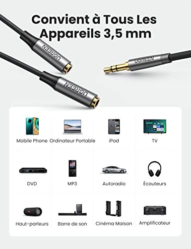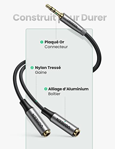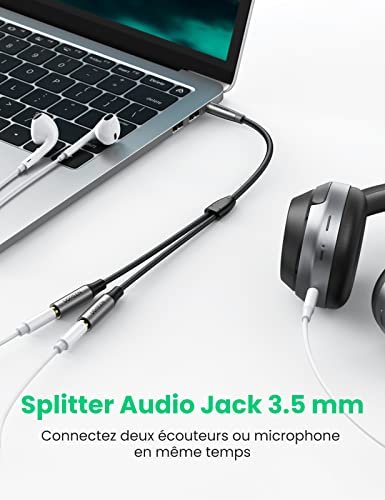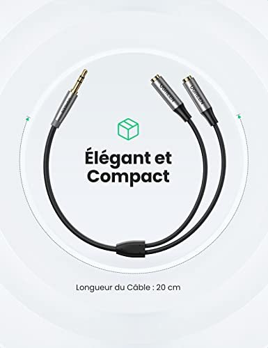 UGREEN Splitter Audio Jack 3.5 mm Adaptateur Double Jack Casque Mâle vers 2 Femelle Câble Audio Splitter Jack Écouteur Compatible avec Enceinte PC iPhone Smartphone PS4 Tablette Hautparleur Voiture