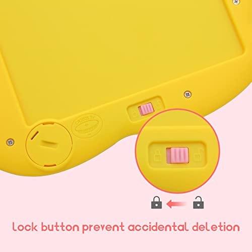 [Diseño de bloqueo de extinción de protección para los ojos] El dispositivo de escritura electrónica digital está equipado con una pantalla de cristal líquido, sin luz azul, más brillante y sin radiación. El interruptor de bloqueo en la parte inferior de la tarjeta evita el borrado accidental. Apáguelo y haga clic en el botón Borrar para borrar rápidamente la pantalla.
