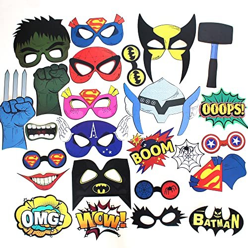 YiYaO Accessoires photo amusants Accessoires photo 25 accessoires photo personnalisés pour les soirées à thème de super-héros